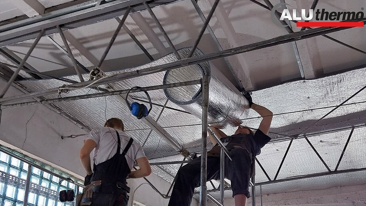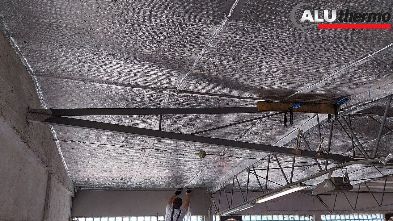 Jako tepelná izolace podkroví skladu byl použit Aluthermo® QUATTRO. Projekt zahrnoval zateplení průmyslového objektu ze 70. let s podkrovím z betonových žlabových panelů DKZ, které byly podepřeny kovovou konstrukcí. Vzhledem k technickým omezením nebylo možné provést zateplení z vnější strany. Na žebra žlabových desek byl namontován systém Aluthermo®, který umožnil vytvořit na obou stranách vzduchovou mezeru, aby byla zajištěna účinnost izolace. Toto řešení nejenže zlepšuje energetickou účinnost haly, ale také nezatěžuje konstrukci, což umožňuje rychlou a pohodlnou montáž. Díky systému Aluthermo® získal investor účinnou izolaci, aniž by musel upravovat stávající konstrukci.